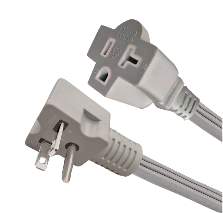 9ft 12/3 SPT-3 Grey Right Angle AC/Appliance Cord w/Grey 5-20 Right Angle Plug and a 5-20 Receptacle