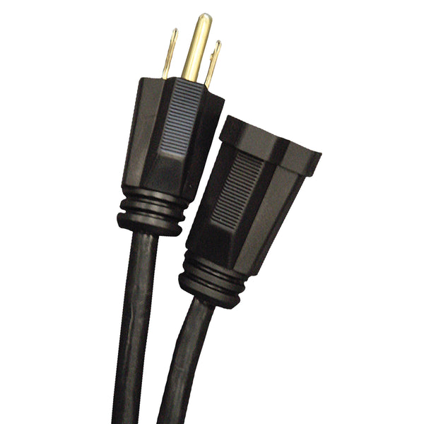 10ft 16/3 SJTW Black Extension Cord with 5-15 Plug & 5-15 Receptacle
