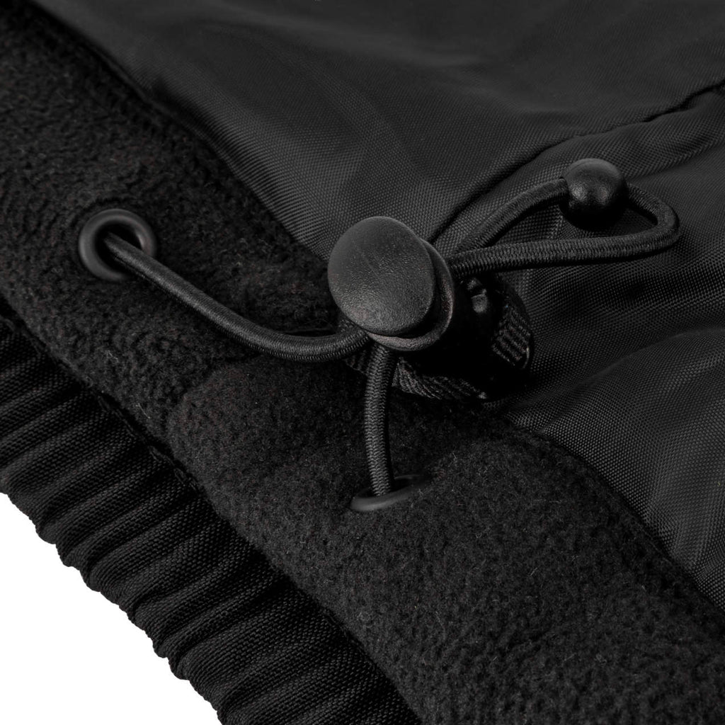 - The jacket shell has a zipper closure and adjustable elastic cuffs with hook and loop adjustment, providing easy on and off.