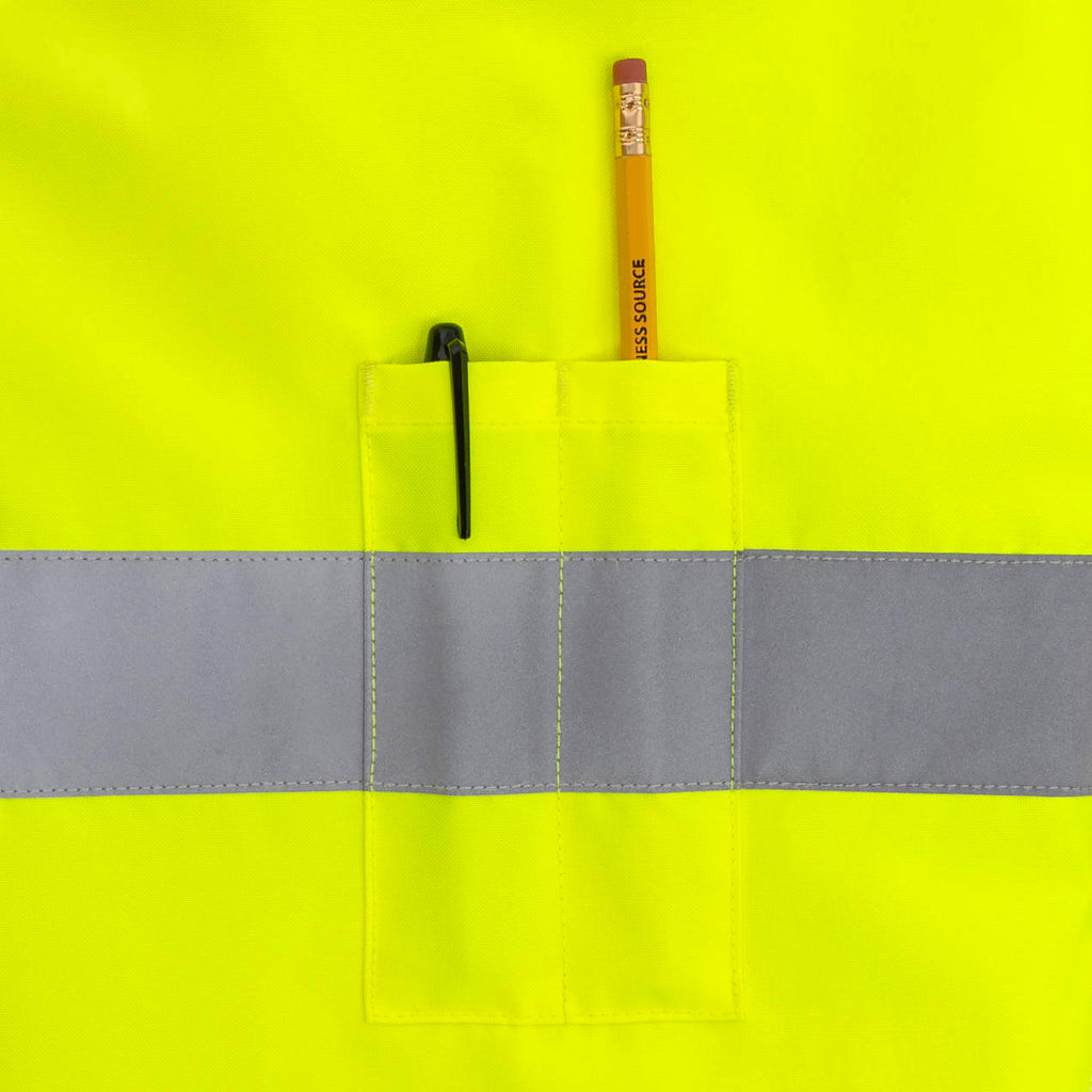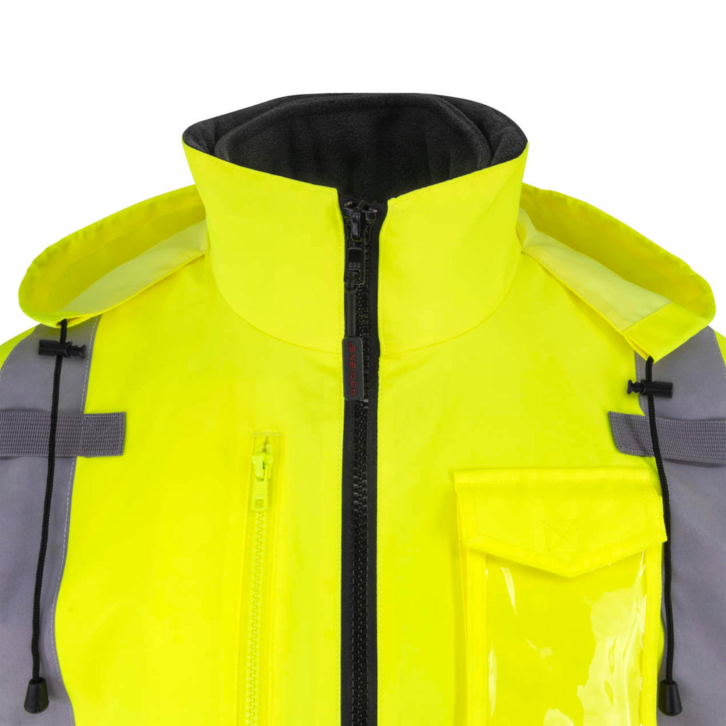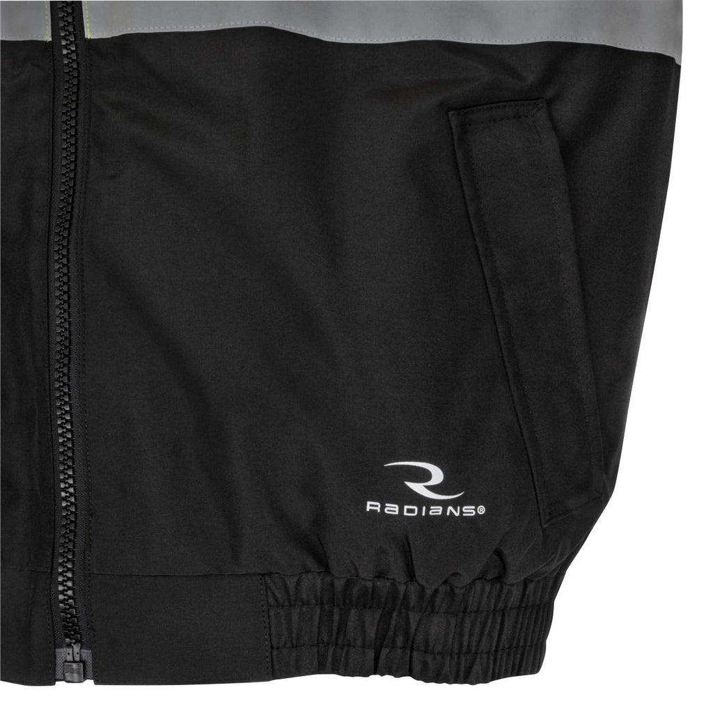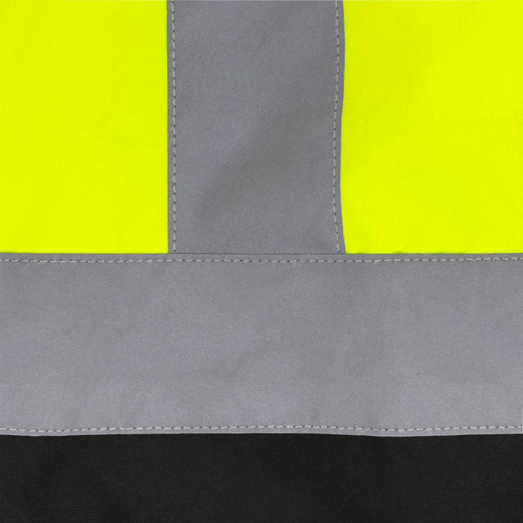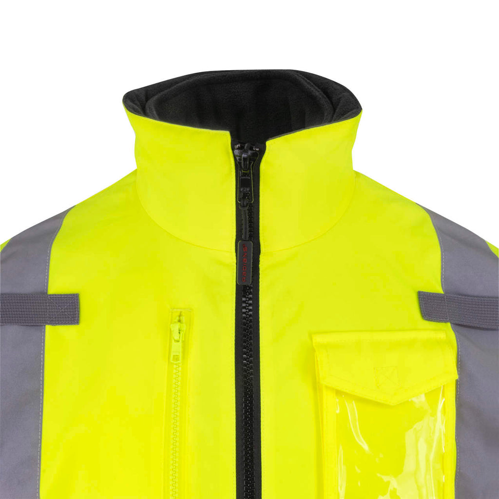 - Bomber jacket style shell made of 100% hi-vis polyester with black color blocking ensures a visible, weatherproof exterior.
